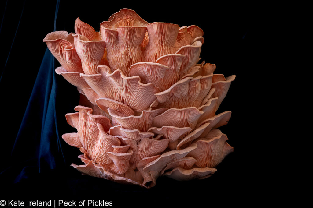 Fresh seasonal produce is what inspires me to take food photos and growing food at home is a wonderful way to experience food at its’ freshest. What started out as a hobby growing culinary mushrooms to be more sustainable has evolved into a sustainable food art practice. I hope that sharing this sneak peak behind the scenes of how I shoot culinary mushroom photos makes you curious to see more of the amazing textures, forms and colours of sustainable mushroom food art at my Mushroom Ocean Exhibition.